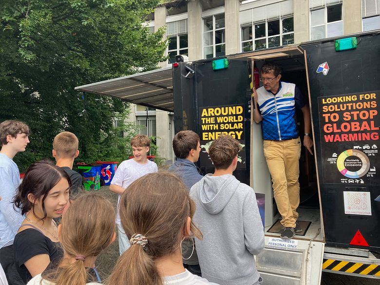 Seit einigen Jahren koordinieren die Rämibühlschulen LG, RG und MNG unter dem Namen Klimacampus ihre Aktivitäten und haben sich mit verschiedenen Projekten einen Namen gemacht. Ein Überblick der letzten drei Jahre ist weiter unten aufgeführt. Das Engagement und die schulinternen Klimafestivals führten dazu, dass in diesem Schuljahr der international bekannte Schweizer Solarpionier Louis Palmer auf uns aufmerksam wurde und sich meldete. Gerne luden wir ihn ein, mit dem SolarButterfly, dem grössten Solarmobil der Welt, vorbeizukommen und unsere Schüler:innen mit seinen Visionen zu inspirieren.