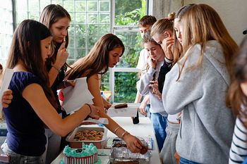 Eingebunden wurde der Besuch in einen Anlass am 7. Juli 2025 mit Kleiderbörse und Kuchenverkauf der Schülerorganisationen. Auf die geplanten Live Bands des MNG mussten wir aufgrund des schlechten Wetters leider verzichten. Die Kleiderbörse fand in Innenräumen statt, und der fröhliche Beat Bazaar wurde mit Beats aus Boomboxen gefeiert.