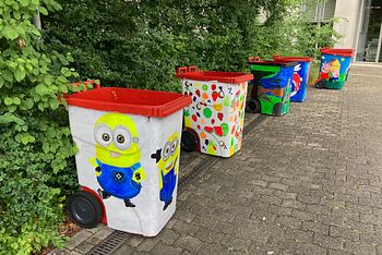 Die herrlich farbigen Mülltonnen, welche von RG-Schüler:innen gestaltet wurden und bald an öffentlichen Orten wie der Seepromenade und dem Zürihorn zum Einsatz kommen, hielten jedem Wetter stand. Sie umringten den SolarButterfly als hätten sie ihn – wie bunte Blüten – angelockt.